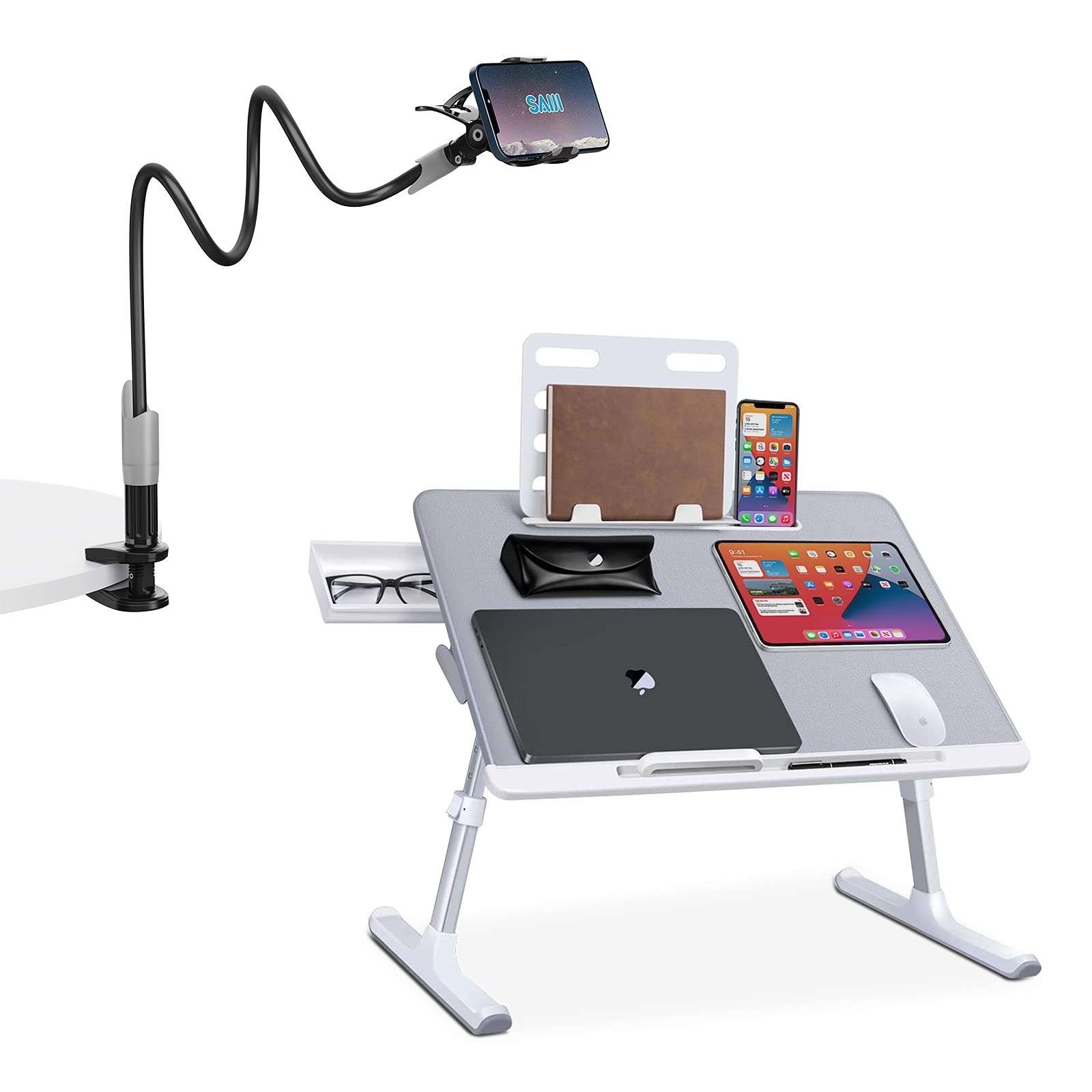 - [FASHION BED DESK]: A detachable mouse and notebook slip can keep your device on the lap desk, preventing the tablet and mouse slide off from the saiji laptop bed tray desk. Ideal gifts choice.