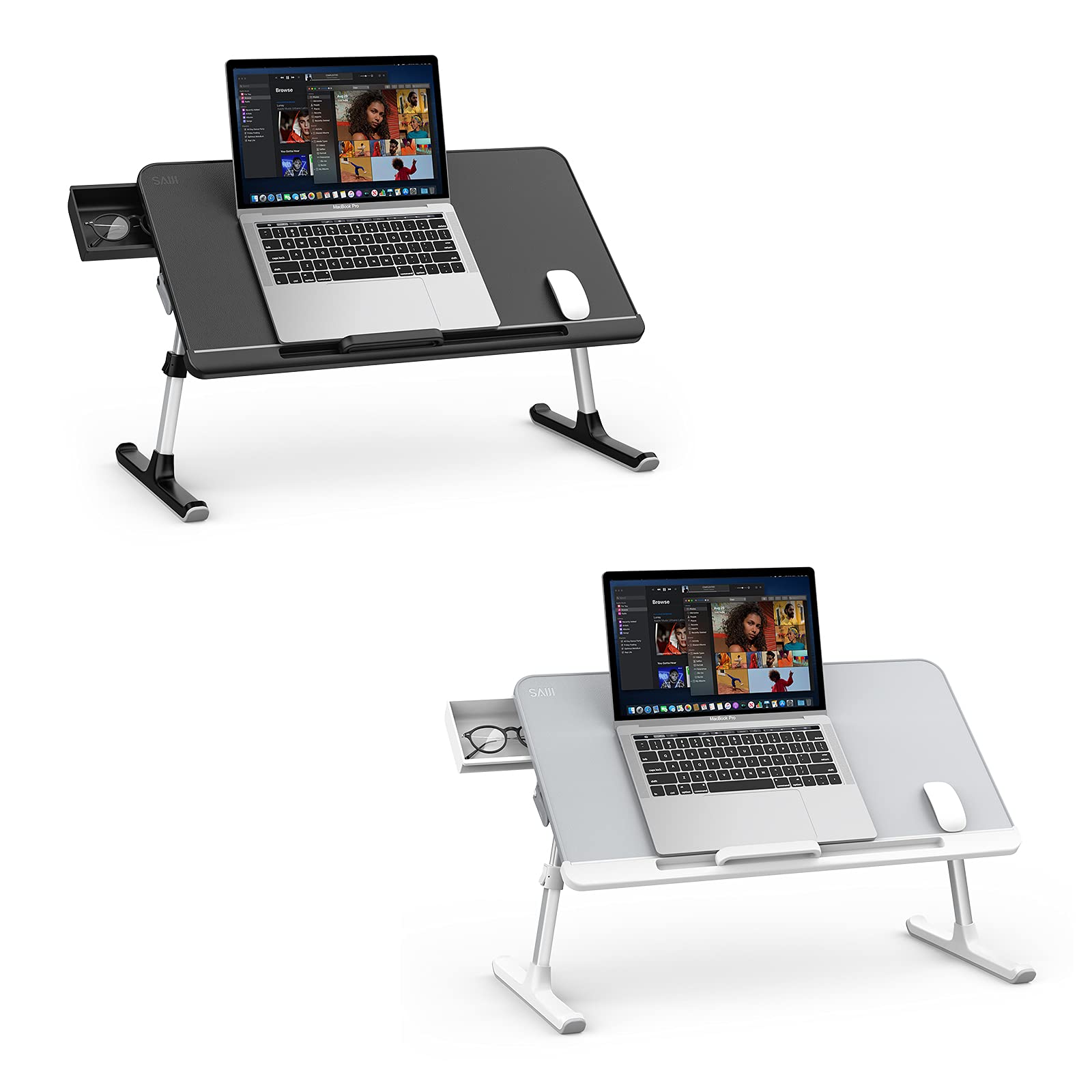 - [CONVENIENCE STORAGE DRAWER]: On the left side of laptop bed tray desk is a little drawer in which you can put your mouse, USB cables, tape, pens, eyeglasses, laptop stopper and other small items in it.